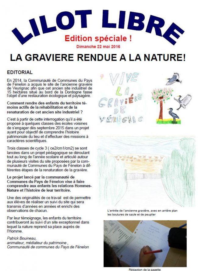 Projet pédagogique autour de la renaturation de la gravière de Veyrignac Education, sensibilisation et pédagogie, Regards sur le territoirePar epidor_admin1 juin 2016