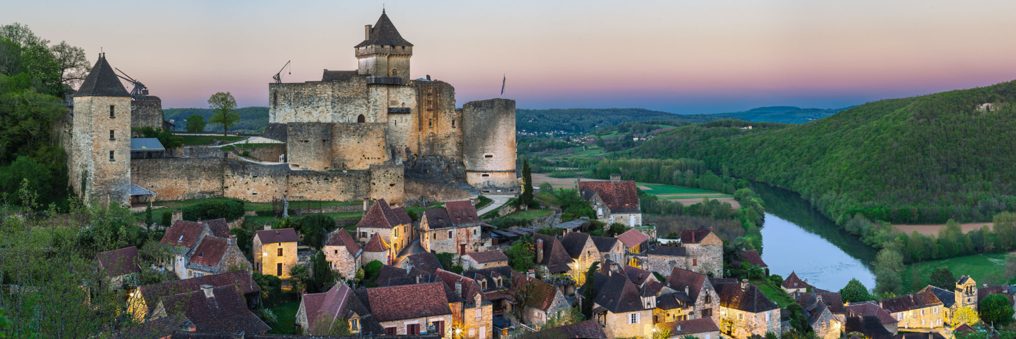 Comment ne pas avoir sans cesse que du vert ? Une photo quasiment de nuit est une possibilité. Ce rendu si particulier de l’image ne sera pas possible avant plusieurs années. Il faut que les capteurs numériques progressent en faible lumière. La quasi totalité de l’image, sauf les parties éclairées par l’éclairage public, montre le paysage à 20h44 ce soir d’avril. 30 minutes plus tard, les réverbères s’allument. Toutes les couleurs prises une demi-heure plus tôt sont toujours présentes mais affaiblies. Il me faudrait de multiples manipulations pour les révéler mais cela se ferait au détriment d’une montée de bruit. Je préfère donc superposer ce qu’il y a « de nouveau » (l’éclairage public) à l’image prise auparavant alors que le contraste, la netteté… pouvaient encore être parfaitement récupérés par l’appareil. Explication en image, cf 2 images ci-dessous (20:44 et 21:14).